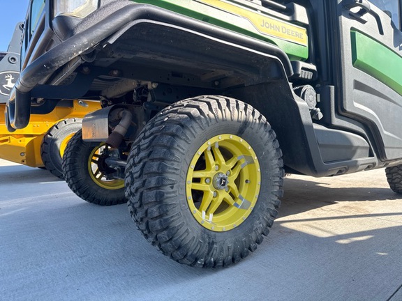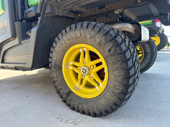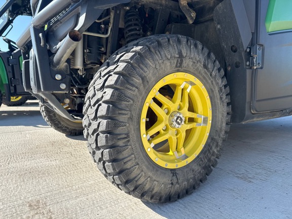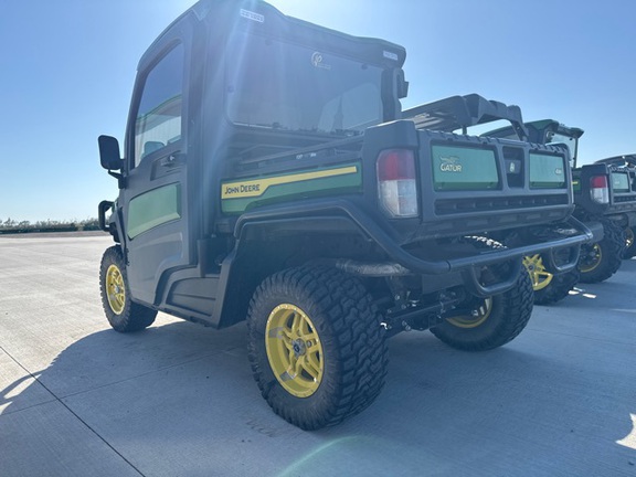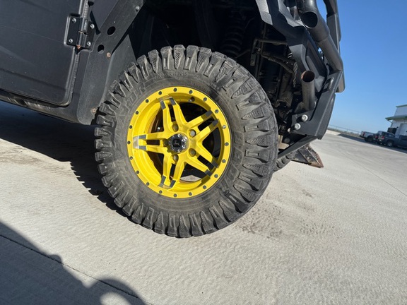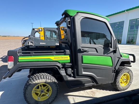 Side by Side/ 3 Person/ Bench/ gas - efi/ Liquid Cooled/ 4WD/ alloy/ All Terrain/ 50%/ Power Steering/ Green and Yellow/ enclosed hard cab/ full windshield/ Turn Signals/ Power Bed Lift/ Front Brush Guard