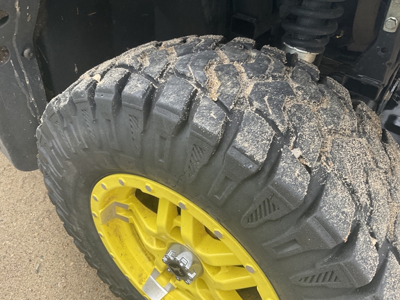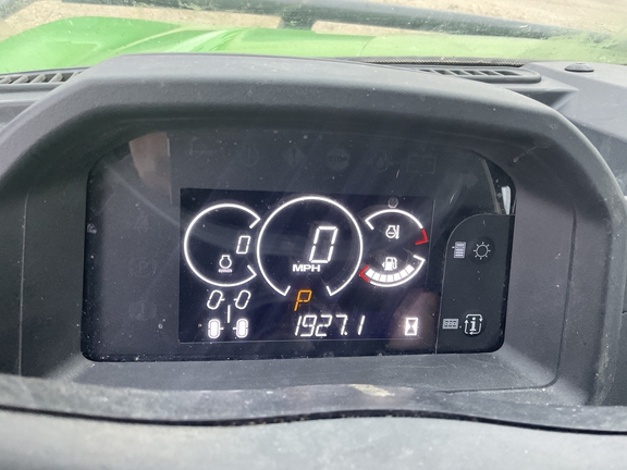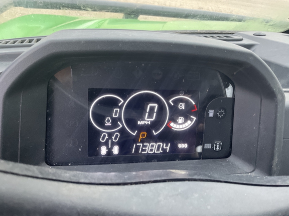 Side by Side/3 Person/Bench/gas - efi/Liquid Cooled/4WD/alloy/All Terrain/80%/Power Steering/Green and Yellow/enclosed hard cab/full windshield/Heater and Air conditioning/Power Bed Lift/Front Brush Guard