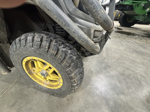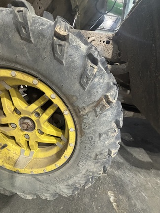 Side by Side/3 Person/Bench/gas - efi/Liquid Cooled/4WD/alloy/All Terrain/90%/Power Steering/Green and Yellow/enclosed hard cab/full windshield/Heater and Air conditioning/Power Bed Lift/Front Brush Guard