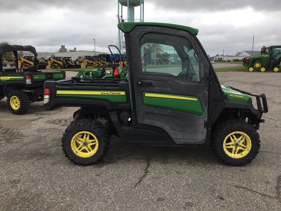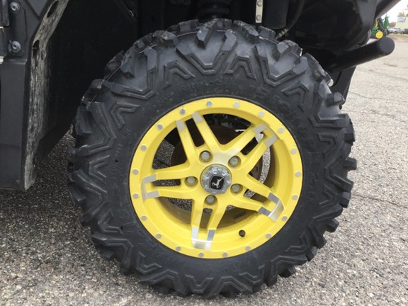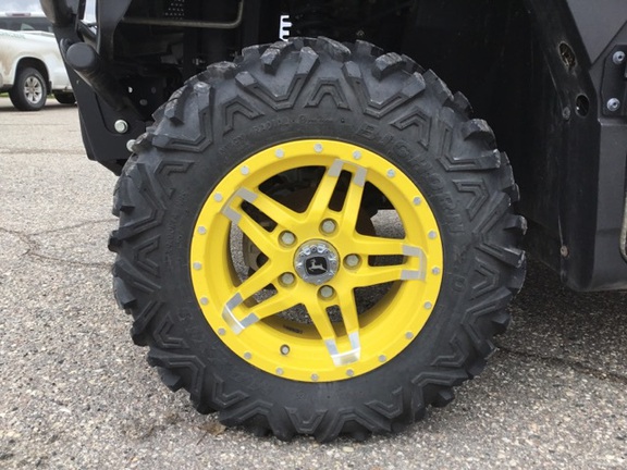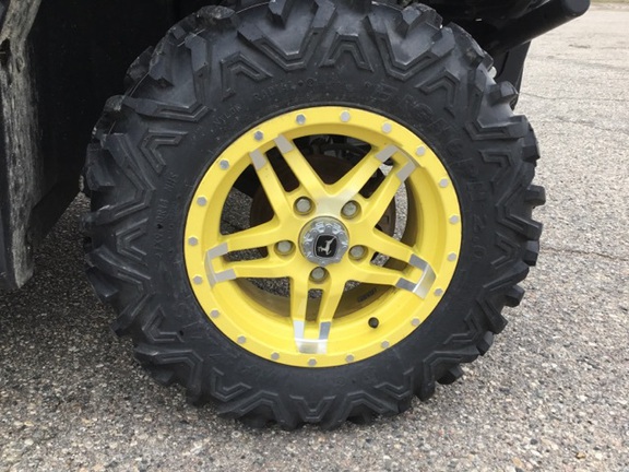 Side by Side/ 3 Person/ Bench/ gas - efi/ Liquid Cooled/ 4WD/ alloy/ Extreme Terrain/ 80%/ Power Steering/ Green and Yellow/ enclosed hard cab/ full windshield/ extra lights/ Power Bed Lift/ Front Brush Guard