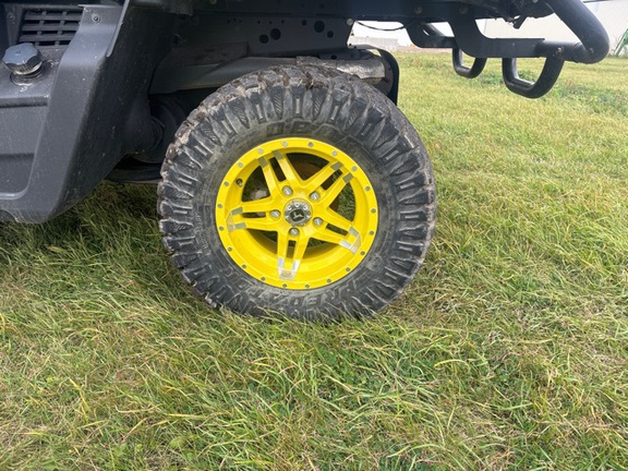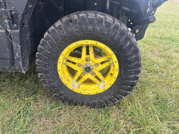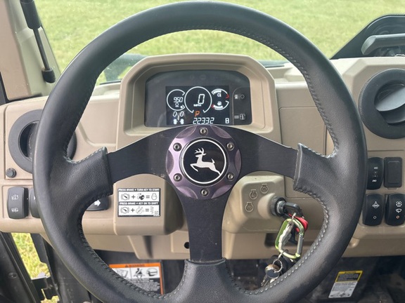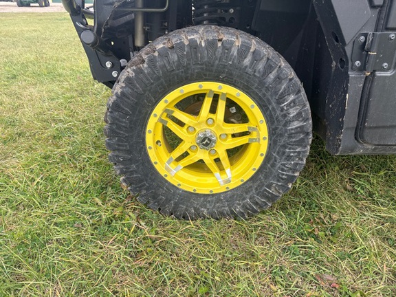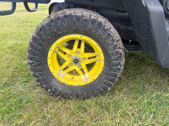 Side by Side/ 3 Person/ Bench/ gas - efi/ Liquid Cooled/ 4WD/ alloy/ All Terrain/ 70%/ Power Steering/ Green and Yellow/ enclosed hard cab/ full windshield/ Turn Signals/ Power Bed Lift/ Front Brush Guard