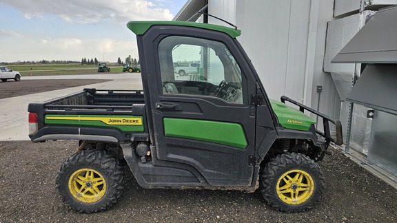 Side by Side/ 3 Person/ Bench/ gas - efi/ Liquid Cooled/ 4WD/ alloy/ All Terrain/ 60%/ Power Steering/ Green and Yellow/ enclosed hard cab/ Turn Signals/ Heat/AC/ Radio / Power Bed Lift/ Front Brush Guard