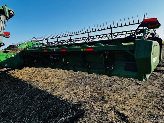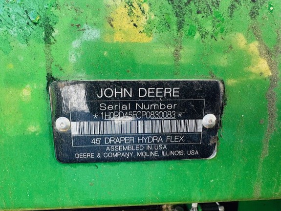 45'/ Flex Draper/ Finger reel with flip over bundle/ Header height sensors in rigid mode/ Poly/ 70%/ Top Auger