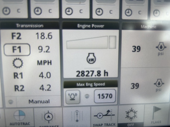 Powershift/ HyrdaCushion/ Heavy Duty Gudgeon bearing/ 800/70R38/ Duals/ 50%/ No PTO/ No 3-Point Hitch/ 6 SCV/ Hi Flow Hydraulic pump/ 7100#/ LESS Guidance Receiver & Ext Monitor